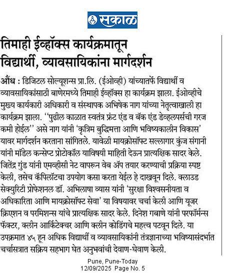 Pune, India | 12th September 2025 — EOV (EmbarkingOnVoyage) Digital Solutions has been featured in Sakal, one of Maharashtra’s leading newspapers, for its pioneering efforts in mentoring students and professionals through the flagship EOVx program.